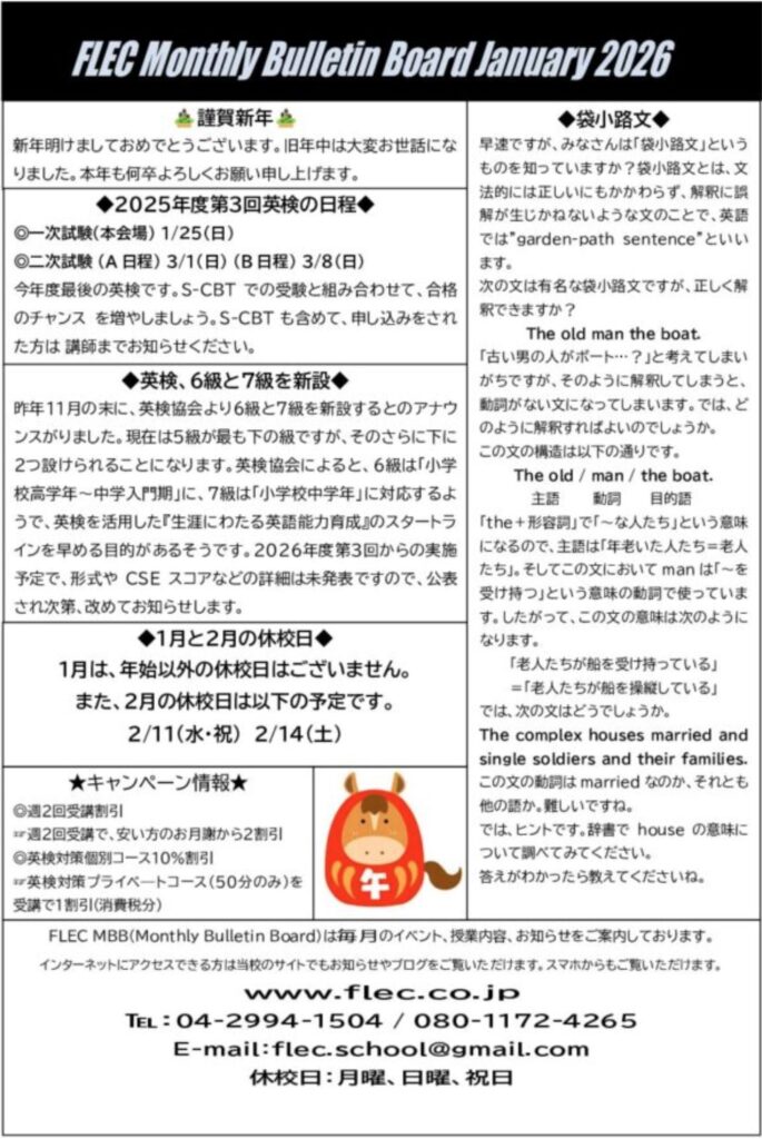 教室便り 1月