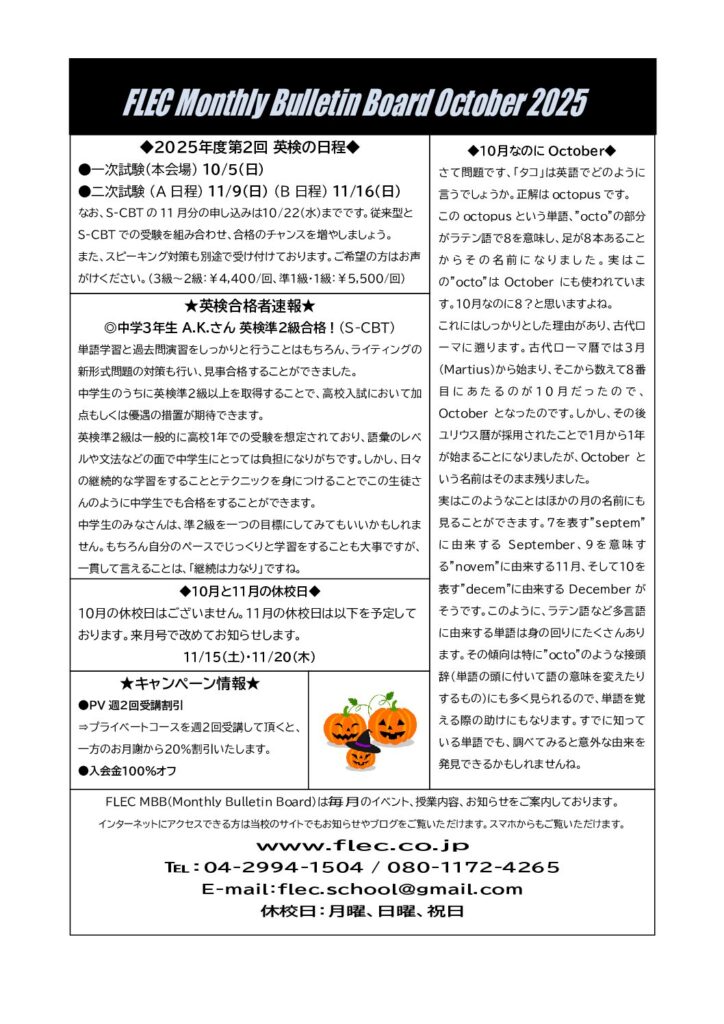 詳細につきましては、ぜひ今月の教室便りをご覧ください。