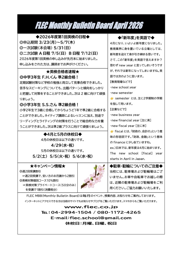 ■ 2026年度 第1回「英検」の申し込みが始まります!